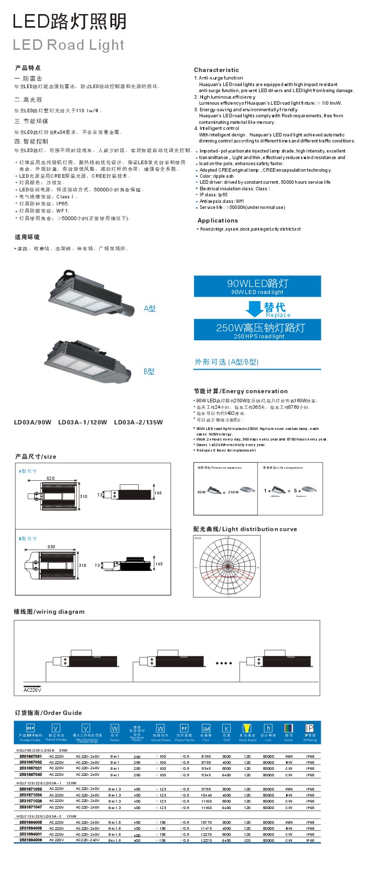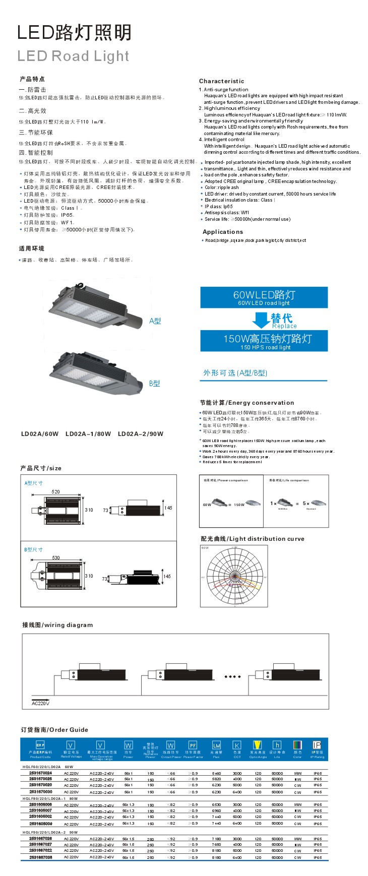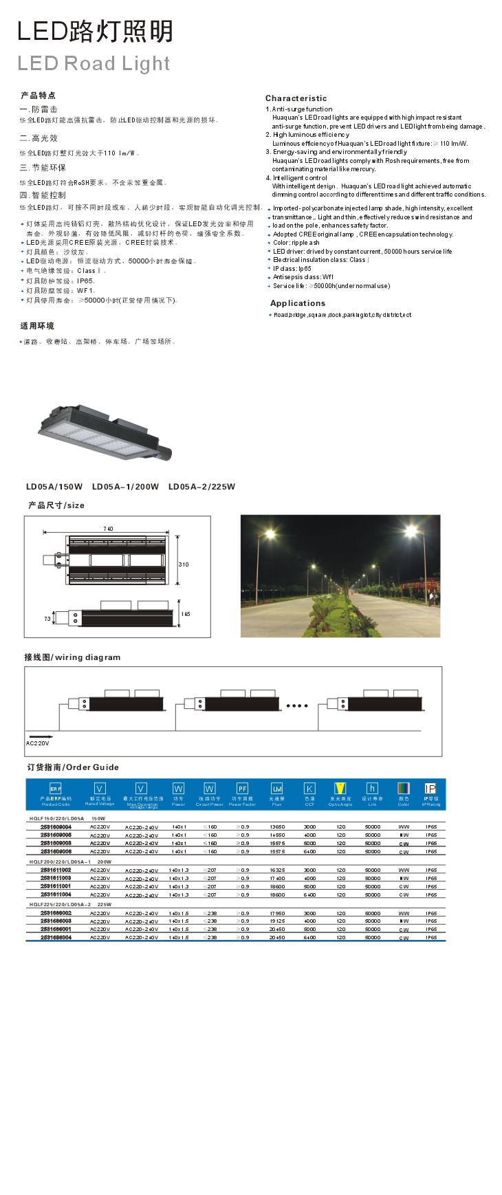 華全LED路燈能高強抗雷擊,防止LED驅(qū)動控制器和光源的損壞。