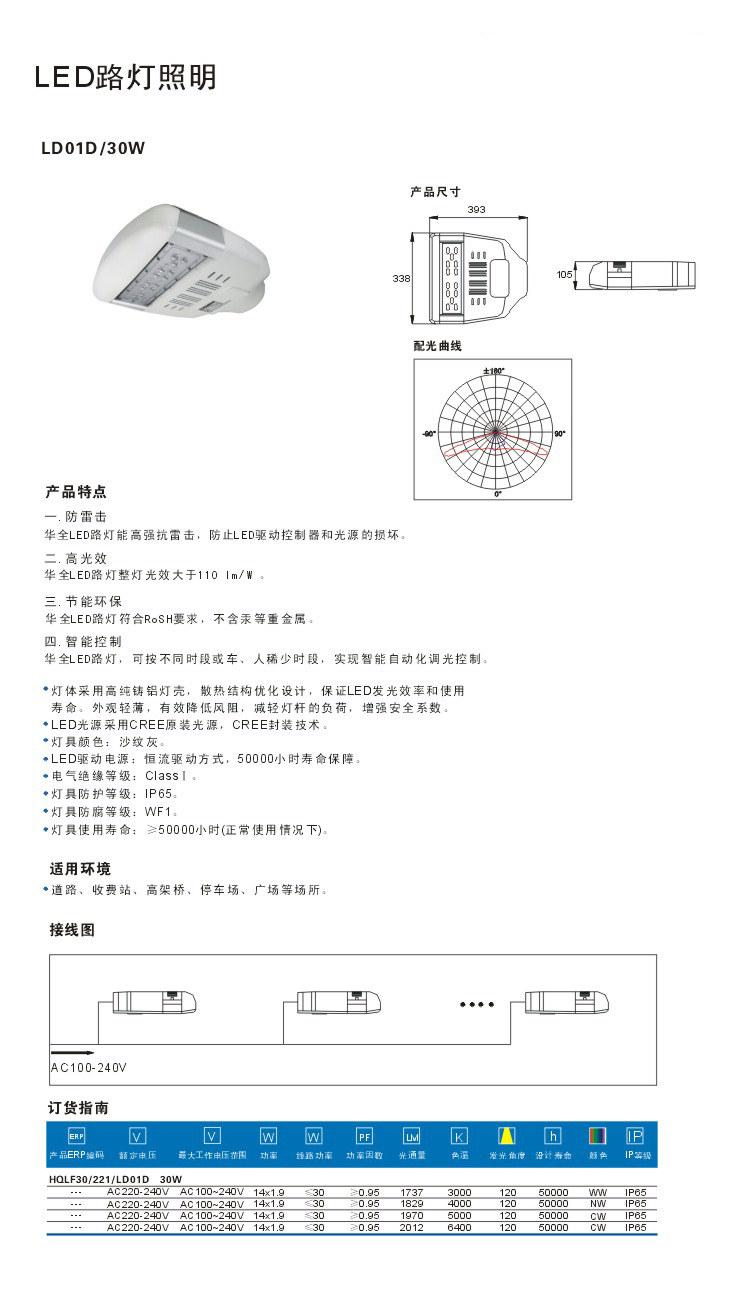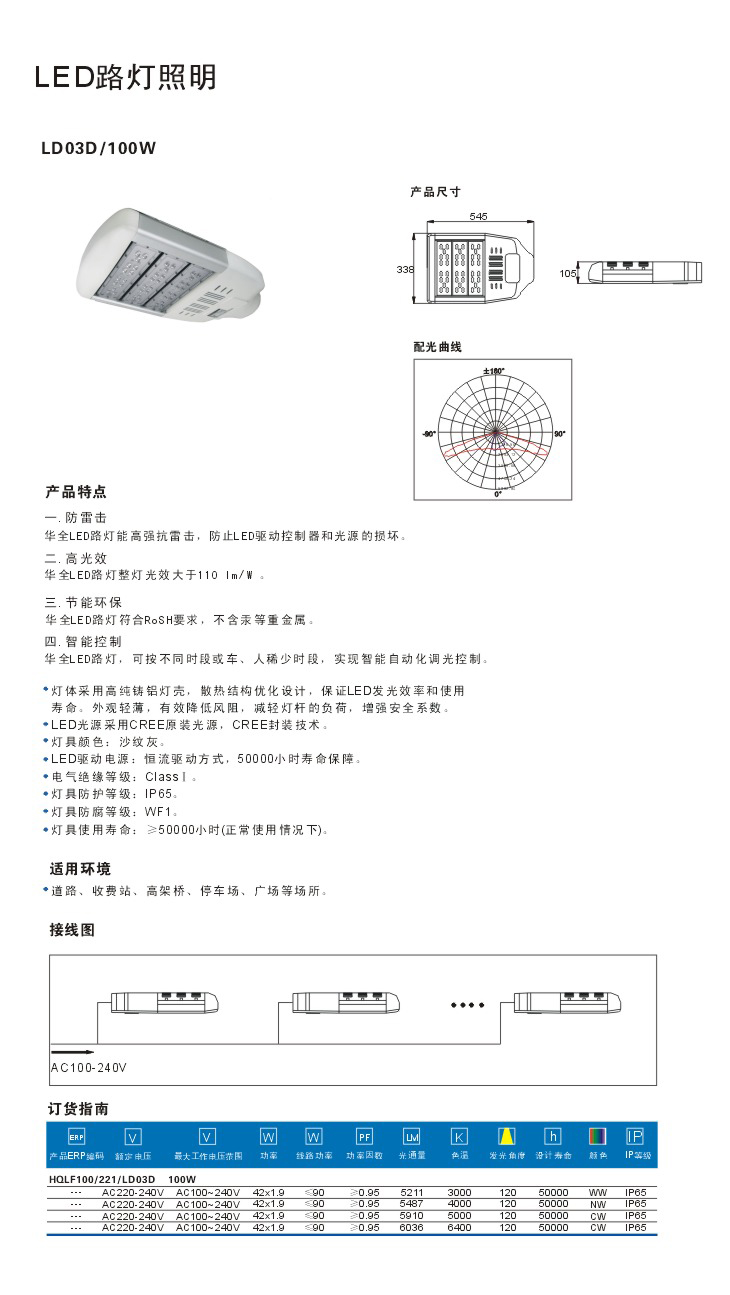 華全LED路燈整燈光效大于110 lm/W.