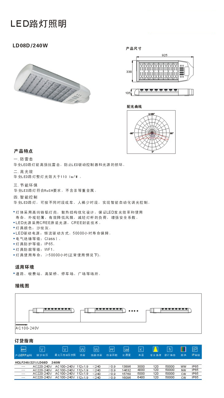 華全LED路燈能高強(qiáng)抗雷擊,防止LED驅(qū)動(dòng)控制器和光源的損壞。
